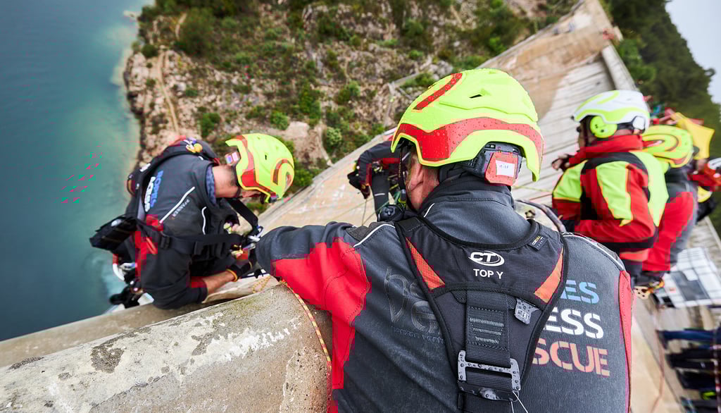 Ce choix est la suite logique de la composition de notre équipe de compétition Rope Access & Rescue, qui est composée de secouristes professionnels et de cordistes. Que ce soit dans nos entraînements ou compétition nous avons trouvé que chacun avait énormément apporté aux autres et que nous avions gagné en efficacité.